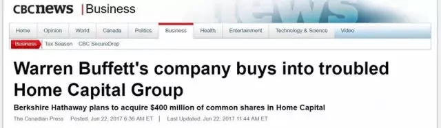 巴菲特的大手笔一举将传说中的“加拿大次贷危机”化解。(重磅 | 谣言还是真相?加拿大房市复制“次贷危机”?)