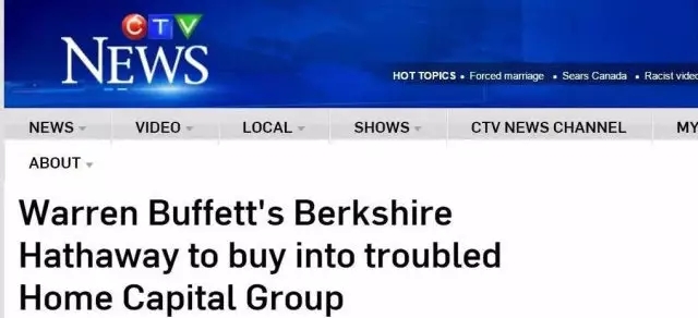 然而,这一切虽然让HCG的股价缓慢回升,但无法完全打消大家对加国楼市的担心并给予投资者和储户足够强的信心,直到巴菲特购买HCG股票!