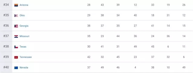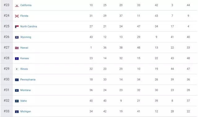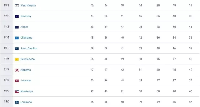 最后附上美国50个州的综合排名完整榜单,为小伙伴们以后在美国买房、留学、工作、生活提供一个最直观的参考依据。