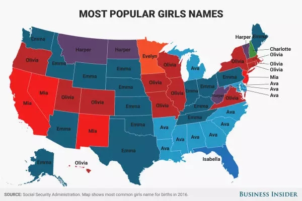 2016年出生的女孩中,艾娃在东南部尤为受欢迎。