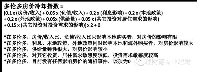综合看来,尽管目前多伦多房价仍然处于“不容易冷却”的区间,但是未来发生的每一件事,都有很大概率让指数跑去“可能冷却”的区间。维持高房价的三个主要因素,目前全都处于不稳定的状态,且都趋向于朝着不利于房价的方向发展。