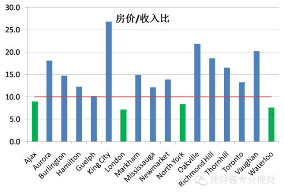 综合考虑,关于房价/收入比这个数字,我认为它的使用需要结合人口密度和地理因素。安省不少重要城市这一比例都在12以上(2008年以前加拿大这一比例平均在4左右持续了20年),今天的这个比例是比较高的。更为重要的是,它只适用于封闭经济体。我认为这个数字在衡量加拿大楼市的时候,应该给一个较低的权重,因为它的高低对房价发展方向影响十分有限。因为同样原因应当被“轻视”的还有负债/收入比。