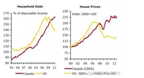 而因为同样的原因,另一个影响房价的因素——负债/收入比,也不能过多作为加拿大房价是否过热的参考因素。下面这篇文章表示加拿大这一比例达到了1.65,并且下图的比较说明加拿大目前人均还债能力已经不如美国了。但是仅此而已,加拿大不是封闭经济,目前影响房价的主力,不全在加拿大境内。