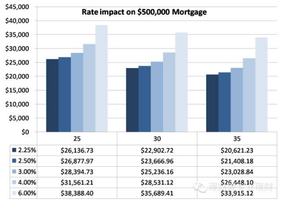 对于本地人,就需要主要考虑一下还贷数量的增加对他们生活的影响。如果他们是活在很边缘的人(当今的房价下真的有可能),买了房以后每一块钱都要精打细算掰开来花,那么升息对他们还是有一定影响的,比如图中这个25年的贷款,要是利息从2.25%上升到3%,他们每年就要多付$2,200多,这可能就是他们一年退税的全部了,甚至有可能是他们养老储蓄的一半以上(有多少人每年为自己养老存$4,500以上的举手,我给你点个赞)。这意味着,因为这么一个升息,他们就要推迟退休好多年,因为这么一个升息,一个家庭的生活质量就完全改变了。
