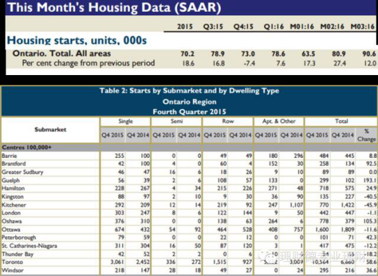在大多伦多,我给“供给量”的权重很低,因为因居住需要所造成的“供不应求”的现象根本没有发生,看下图一些CMHC的最新统计,新屋建造保持增势,“多伦多没地了”这种说法是肯定不存在的,现在的楼市还是属于“你要多少我给你盖多少”这么一个状态,甚至在向“估计以后买的人更多,先盖再说”的方向发展。