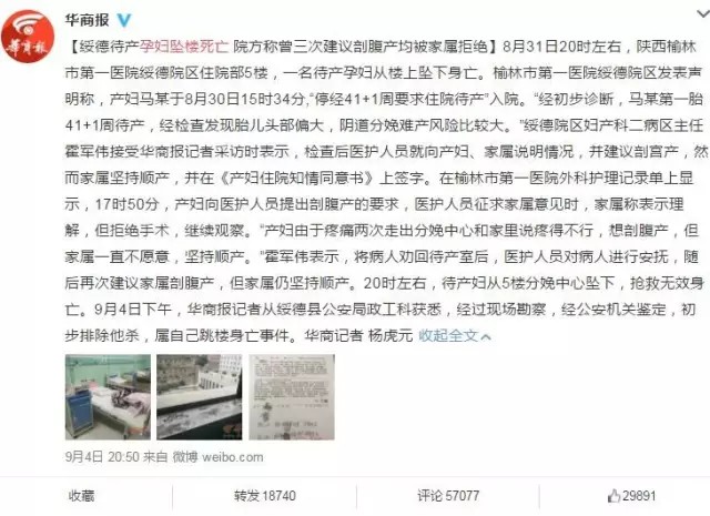 然而时隔1天9月5日,《北京青年报》刊登了一篇文章表示坠亡产妇马某的丈夫延先生,对于医院发布的声明,他表示不认可。