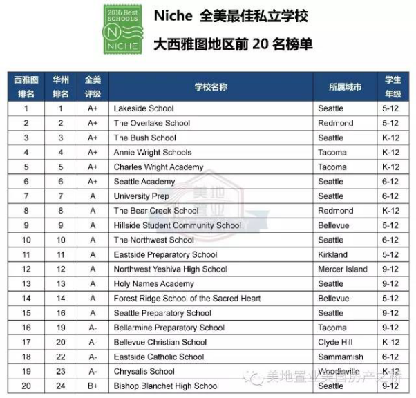 【北美购房网】2016-17年度全美最佳私立学校排名及入学信息(西雅图(公寓)篇)