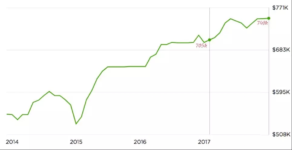此外,该地区每平方英尺中位价格为473美元。房屋价值中位数在过去一年中上涨了8.4%,预计在2018年还将有3.4%的上涨潜力。