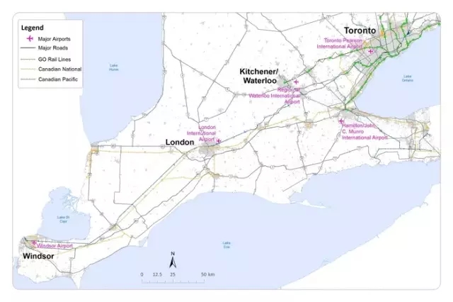 安省计划兴建的高速铁路即将得到落实,这条高铁将贯穿最西边的温莎(Windsor),到伦敦(London),滑铁卢(kitchener-waterloo),最后到达多伦多。