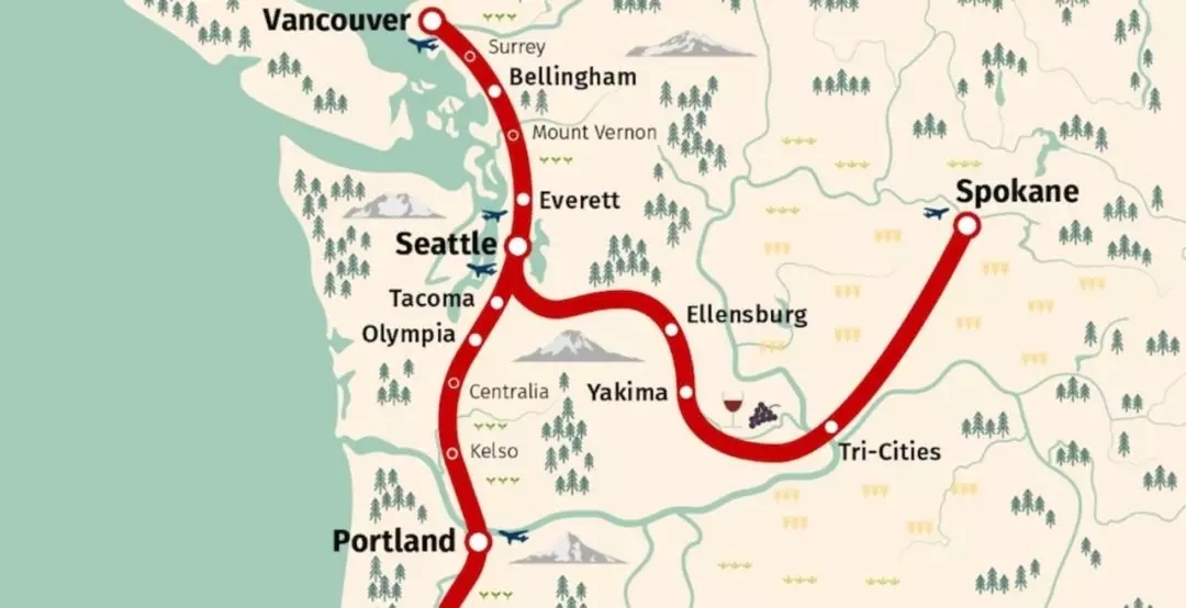 如果该路线最终兑现,意味着8个美国城市可以成为西雅图和温哥华的卫星城,从斯波坎到达温哥华市中心的通勤耗时甚至比素里到温哥华市中心还要短。