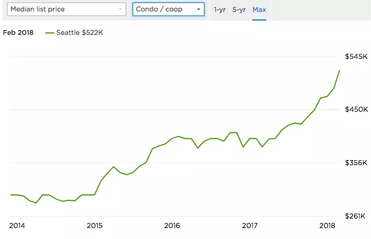 2月份Zillow统计显示,西雅图地区独立住宅的平均价格已经超过了75万美元,而公寓的平均价格也史上首次突破了50万美元。